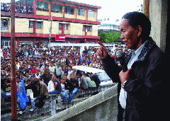 Hopingstone Lyngdoh, sitting MLA from Nongstoin addressing a public rally